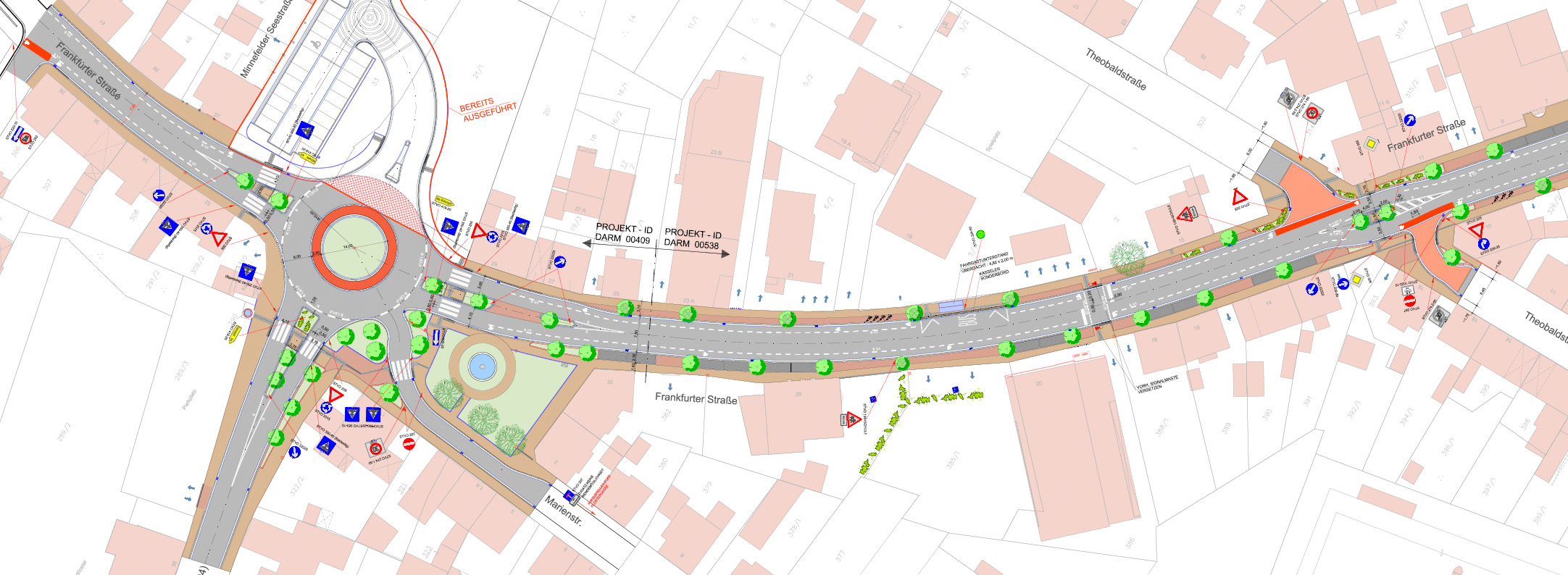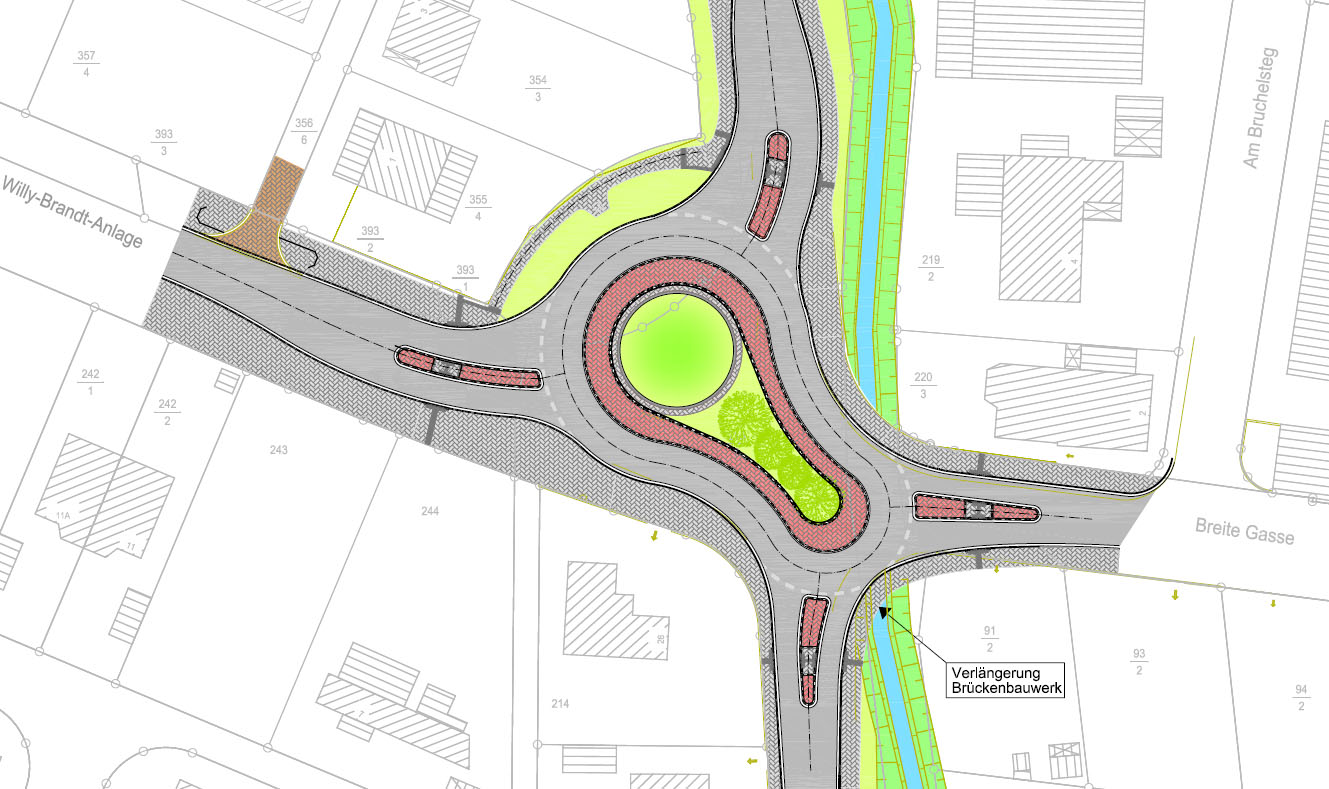 - Umgestaltung von Kreuzungen zu Kreisverkehrsplätzen